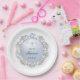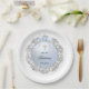 Silver Glitter Frame Blue Bow Baptism Paper Plates