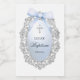Silver Glitter Frame Blue Bow Baptism Wine Label