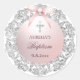 Silver Glitter Frame Pink Bow Baptism Classic Round Sticker