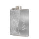 Easily personalize this silver brushed metal and glamorous faux glitter patterned flask with your own custom name.