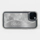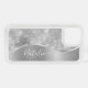 Easily personalize this silver brushed metal and glamorous faux glitter patterned phone case with your own custom name.