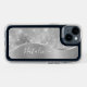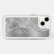 Easily personalize this silver brushed metal and glamorous faux glitter patterned phone case with your own custom name.