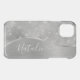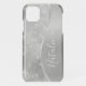 Easily personalize this silver brushed metal and glamorous faux glitter patterned phone case with your own custom name.