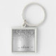 Silver Faux Foil Metallic Sparkle Glitter Brushed Metal Monogram Name Keychains (Key Chain). This makes the perfect sweet 16 birthday, wedding, bridal shower, anniversary, baby shower or bachelorette party gift for someone that loves glam luxury and chic styles.