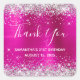 Create your own girly glam faux silver glitter and bright hot pink foil thank you square stickers for her special 21st birthday party celebration.