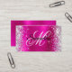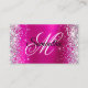Silver Glitter Hot Pink Foil and QR Code Monogram Business Card