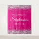 Silver Glitter Hot Pink Sweet 16 Birthday Welcome Tapestry