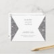 Silver Glitter image and White Envelope Style. Wedding Save the Date. Back with Bride and Groom last names as well as the text Wedding. Website.