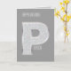 Silver Letter P grey monogram faux glitter glam personalized with name birthday card
