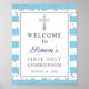 Silver Glitter Light Blue First Communion Welcome Poster