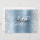 Silver Glitter Light Blue Monogram 80th Birthday Invitation