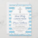 Silver Glitter Light Blue Stripes First Communion Invitation