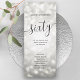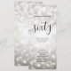 Elegant Glam Silver Glitter Lights 60th Birthday Script template featuring party program text, glitter lights and modern typography script.