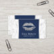 Silver Glitter Lips Navy Blue Elegant Marble Business Card