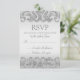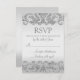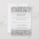 This custom modern RSVP card design features faux silver glitter accents with a silver background. Perfect for elegant and modern weddings. Change the font style, move text, and more, by clicking the "Customize It" button.