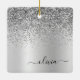 Silver Glitter Metal Monogram Glam Name Ceramic Ornament