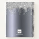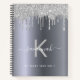 A faux silver metallic looking background with elegant faux silver glitter drips, paint dripping look. Personalize and add a name, monogram letter and a title. The name is written in white with a large modern hand lettered style script with swashes. Perfect for school, work or as a your secret diary.