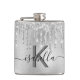A faux silver looking background with faux glitter drips, paint dripping look. Personalize and add a name and monogram letter. The name is written in black with a large, bold modern hand lettered style script with swashes. To keep the swashes only delete the sample name, leave the spaces or emoji's in front and after the name.