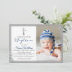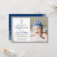 Silver Glitter Navy Blue Boy Baptism Photo Invitation