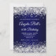 Silver Glitter Navy Blue Monogram 40th Birthday Invitation