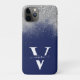 Silver Glitter Navy Blue Monogram Elegant Custom iPhone 11 Pro Case. A fun and trendy design with sparkling glitter effect with a split monogram you can customize! **NOTE - The gold dust/glitter is graphic simulated and not real gold dust. No gold dust/glitter is used in making this.