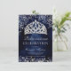 Silver glitter navy blue photo tiara Quinceañera Invitation