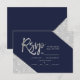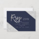Silver glitter navy blue script wedding Rsvp Card