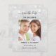 A modern wedding Save the Date photo card. A faux silver looking background. Decorated with faux glitter dust. Personalize and add your photo, wedding details.