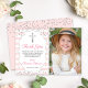 Silver Glitter Pink Stripes First Holy Communion Thank You Card