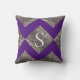 Silver Glitter Purple Monogram Bling Chic Throw Pillow