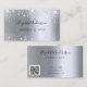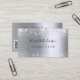 An elegant and glamorous business card on a faux silver background decorated with faux silver glitter dust on the front. Elegant black hand lettered style script. Personalize and add Your name, title, and contact info. Add your own QR code to your website.