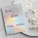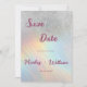 Simple bold pink typography with silver glitter and watercolor rainbow holographic Wedding Save the Date invitation is perfect for any classy and sophisticated glam girl. This design is ideal for a trendy and stylish party event. Customize this design with your message and personalized information. All designs are printed.