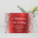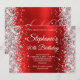 Silver Glitter Red White Monogram 40th Birthday Invitation