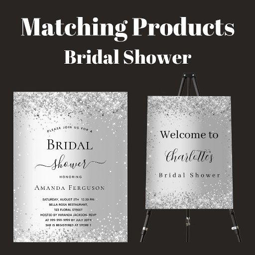 A faux silver metallic looking background with faux glitter dust. Personalize and add your name and address. Perfect for a wedding, bridal shower, baby shower or birthday party invitations.