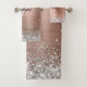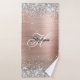 Silver Glitter Rose Gold Foil Fancy Monogram Bath Towel Set