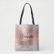 Silver Glitter Rose Gold Foil Fancy Monogram Tote Bag