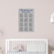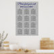 An elegant seating chart with a glittery silver background image with Royal blue and black fonts. This beautiful seating chart is part of a matching wedding suite that can be fully personalized.