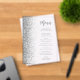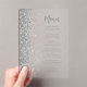 The left-hand edge of this elegant modern wedding menu features a faux silver glitter border. The customizable text combines gray handwriting script and sans serif font on a clear background.