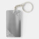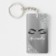 Silver Glitter Sparkle Eyelashes Monogram Name Keychain