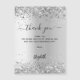 A faux silver looking background, decorated faux glitter, sparkles. Large hand lettered script and the text: Thank You. Personalize and add your thank you note and name.