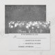 silver grey wedding RSVP card with hanging string lights and faux glitter shimmer texture background (not actual glitter).