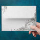 This stylish elegant envelope has a silver glitter flourish swirl design at the bottom on the backside. There are jewel embellishments that are hot fuchsia pink colored. PLEASE NOTE, the jewels are FAUX, not a real embellishment, they are just part of the design. This trendy envelope is part of a matching wedding invitation set that is available through my shop.