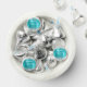The background image features a girly glam aqua blue and turquoise ombre brushed metal style foil with matching faux silver glitter digital art graphics.