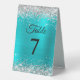 Silver Glitter Turquoise Blue Foil Table Number Table Tent