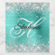 Silver Glitter Turquoise Foil Fancy Monogram Wine Label