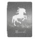 Add an elegant touch to your computer workspace with a Silver Glitter Unicorn Personalized iPad Smart Cover. Cover design features a unicorn walking a star trail against a glitter background. Additional items available with this design as well.