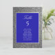 Modern, sparkle, elegant, bling silver glitter and royal blue wedding table number - seating chart with simple calligraphy.