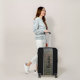 Travel in style with this silver glitter luggage. Use the different boxes for different font options. in black