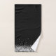 On this stylish towel set are glittery glam silver edging on pink and black. Glitzy glam