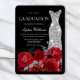 Silver Gown Red Roses Black Graduation Party Invit Invitation